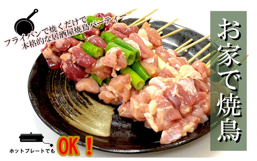 冷凍で届く鳥串を解凍し、フライパンで焼くだけ。一本一本手刺しにこだわった職人の鳥串をご家庭で堪能できます。